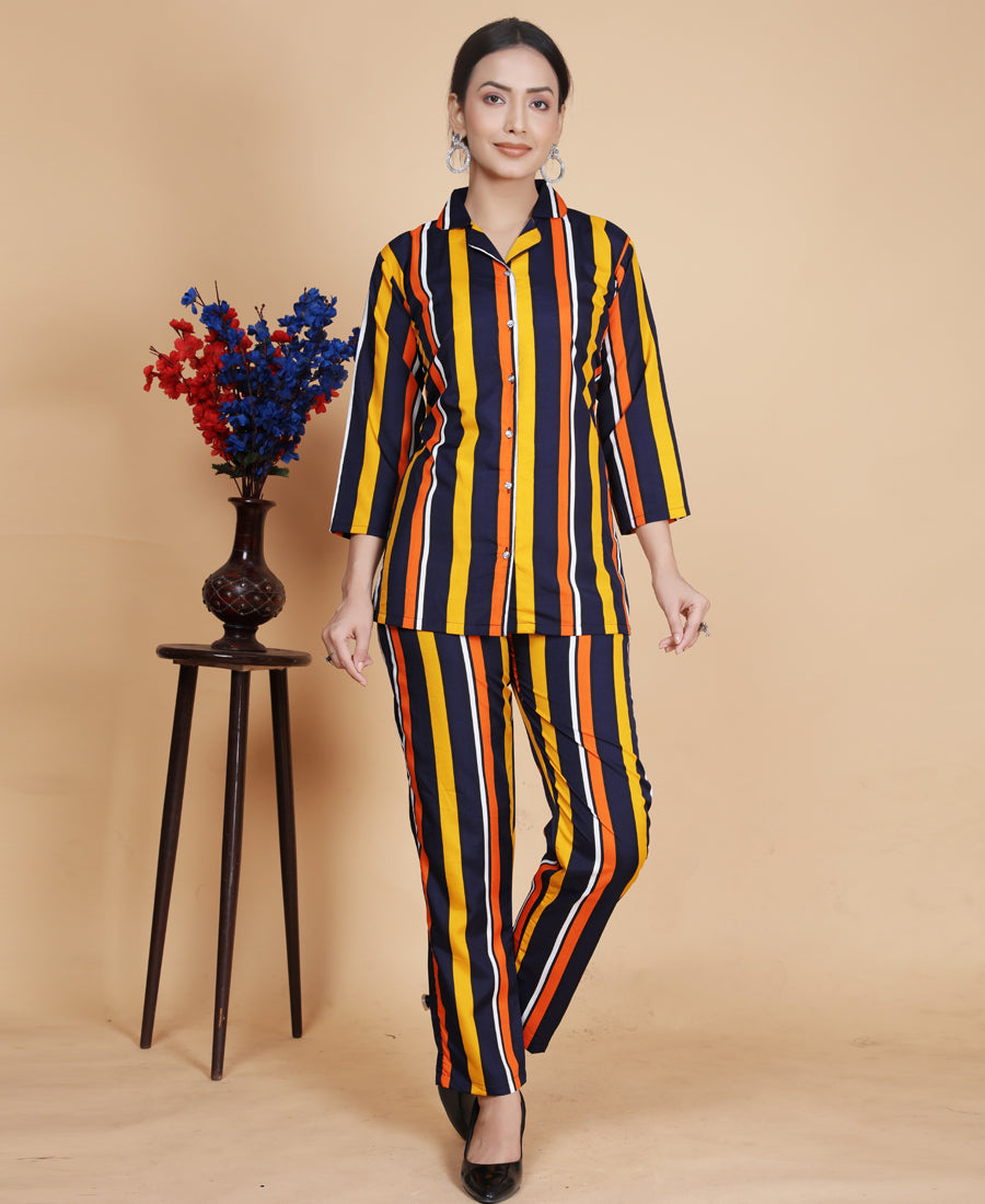 Blending timeless elegance with modern ease, this printed co-ord set is a versatile wardrobe staple. Perfect for brunches, meetings, or casual outings, its soft Twil Cotton fabric ensures all-day comfort and confidence. The eye-catching print adds a touch of personality, while a thoughtfully placed pocket on the bottoms brings practical charm to your look.