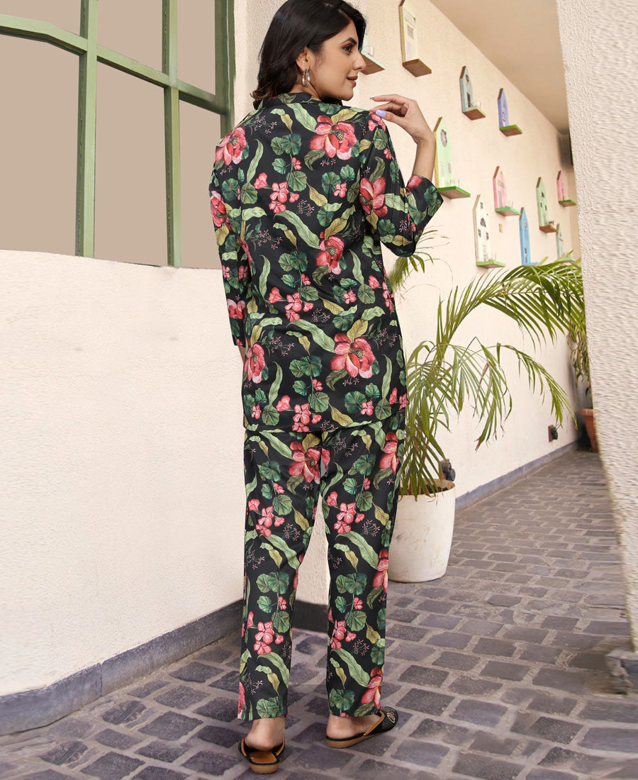 Merge charm and comfort with this beautifully designed co-ord set. Featuring a graceful print that adds a stylish flair, it transitions effortlessly from casual moments to professional settings. Crafted from ultra-soft Twil Cotton and finished with a convenient pocket, it’s the perfect blend of elegance and everyday ease.