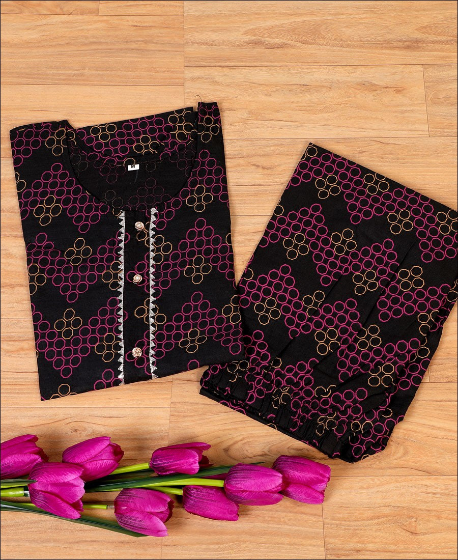 You will be in love with this Black color Kurti Beautified with Gota Patti - Block Print. Readymade Kurti comes with a Top & Bottom. This stitched kurti is perfect to pick for party, weekend get-together, kitty parties and events. Pair it up with leggings, cigarette pants to create a contrasting effect, along with heels & stylish accessories.