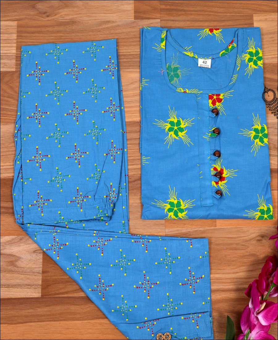 Design and pattern will be at the peak of your magnificence once you dresses this Aqua Blue color Kurti Beautified with Block Print. Readymade Kurti comes with a Top & Bottom. This stitched kurti is perfect to pick for party, weekend get-together, kitty parties and events. Pair it up with leggings, cigarette pants to create a contrasting effect, along with heels & stylish accessories.