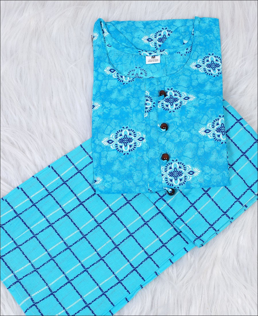 You will be in love with this Blue color Kurti Beautified with Block Print. Readymade Kurti comes with a Top & Bottom. This stitched kurti is perfect to pick for party, weekend get-together, kitty parties and events. Pair it up with leggings, cigarette pants to create a contrasting effect, along with heels & stylish accessories.