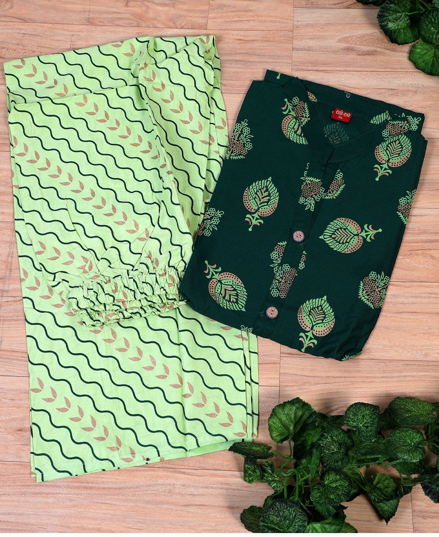 Look and feel beautiful in this dark green color Kurti Beautified with block print work. Readymade Kurti comes with bottom.This stitched kurti is perfect to pick for party, weekend get-together, kitty parties and events. Team it with high heels and fashionable accessories to look more attractive.
