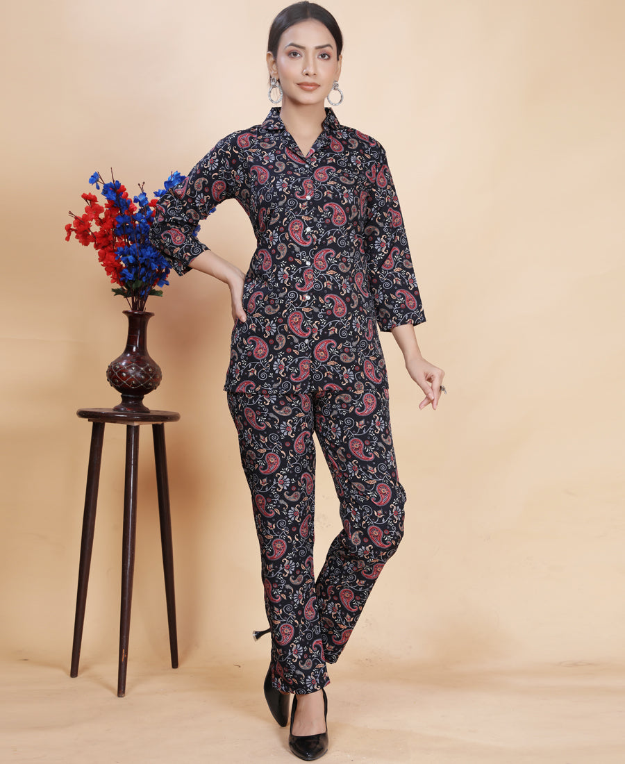 Effortlessly combining charm and comfort, this beautifully crafted co-ord set elevates your everyday style. A graceful print adds just the right touch of flair, making it perfect for both casual outings and professional settings. Cut from ultra-soft Twil Cotton and finished with a functional pocket, it’s the ideal blend of elegance and ease.
