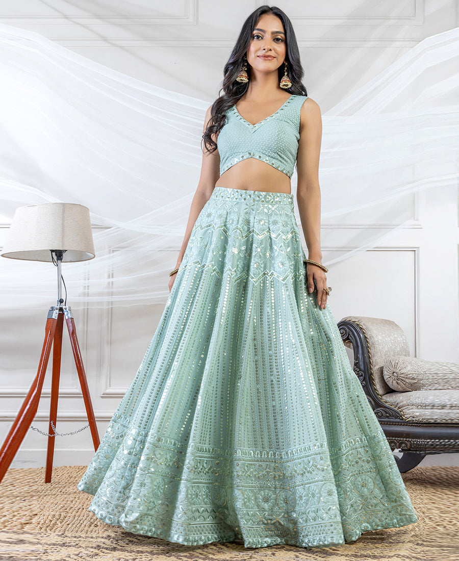 Jungle Mist Color Georgette Sequins Work Lehenga Choli