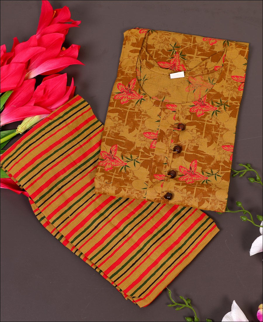 Appear stunningly lovely with this Mustard Yellow color Kurti Beautified with Block Print. Readymade Kurti comes with a Top & Bottom. This stitched kurti is perfect to pick for party, weekend get-together, kitty parties and events. Pair it up with leggings, cigarette pants to create a contrasting effect, along with heels & stylish accessories.