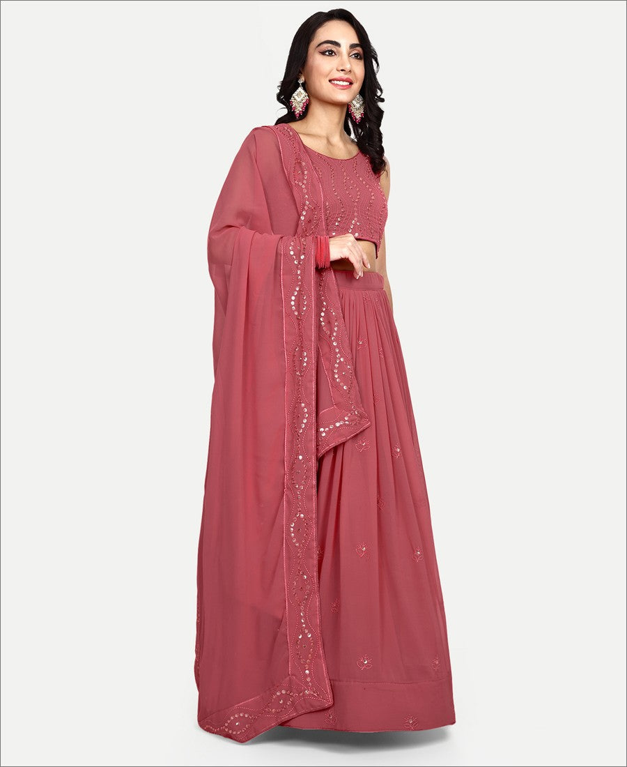 The glamorous georgette pink designer lehenga is an ode to all things fine and exquisite.specially designed to wear in wedding, functions and special occasions.beautified with amazing sequence embroidery work within the attire adds a sign of elegance statement with your look. the semi-stitched lehenga is made of georgette fabric accompanied with unstitched georgette fabric blouse piece and georgette dupatta. women can buy this lehenga choli to wear for their functions, festivals, wedding functions or engagement ceremonies and occasions, where you want to be center of attraction. team it with traditional accessories to make your looks more beautiful. buy this lehenga choli and earn lots of compliments from onlookers. measurement : 3 meter lehenga flair,2 meter dupatta, 0.80 meter blouse,waist - up to 40".