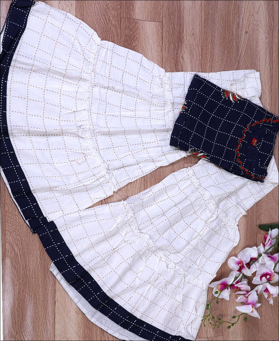 Brighten up your casual look for a weekend with this Navy Blue color Kurti Beautified with block print with zardoshi work.this Readymade Kurti comes with Bottom. This stitched kurti is perfect to pick for party, weekend get-together, kitty parties and events. Pair it up with leggings, cigarette pants to create a contrasting effect, along with heels & stylish accessories.
