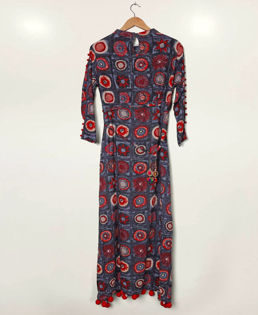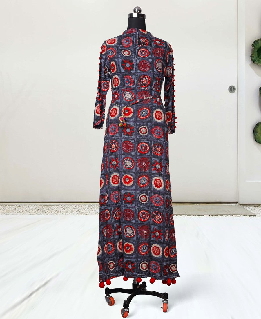 Become an enchanting mystery in this delightful printed kurti. This ready to wear kurti is made from very comfortable fabric which is assures the wearer a comfort. Ideal for casual outing,event & weekend get together. Team it with matching leggings, high heels and fashionable accessories to look more attractive. This attractive kurti will surely fetch you compliments for your rich sense of style.Available in L and XL size.