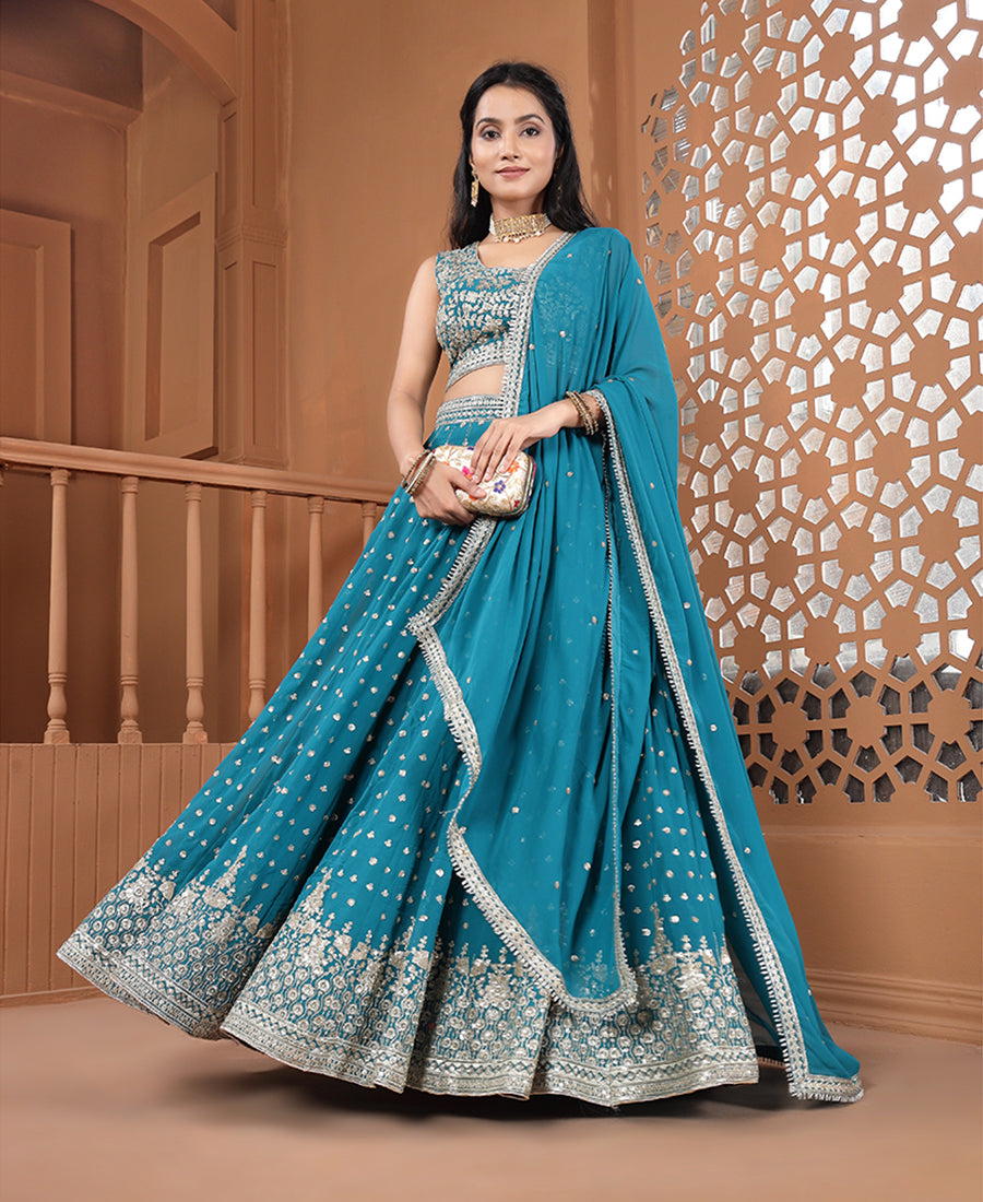 Lehenga: Georgette Fabric With Sequins Embroidery Work