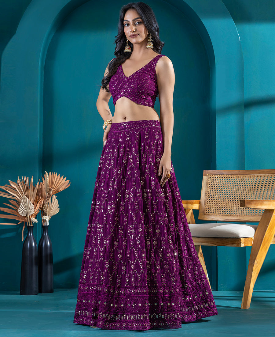 Lehenga: Georgette Fabric With Sequins Embroidery Work